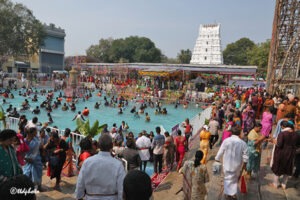 The priests, officials and a large gathering of devotees participated in the holy ritual bath.