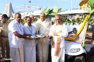 On this occasion, the donor performed special pujas in front of the Srivari Temple and handed over the keys of the battery buggies to the TTD Additional EO, Sri Ch. Venkaiah Chowdary.