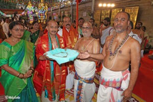On this occasion, Sri Venkateswara Temple, Tirumala, presented ornaments worth ₹62.44 lakhs — including a golden Gajalakshmi medallion and two silver lamp pillars.