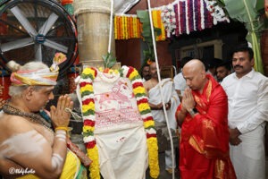 As per the temple tradition, a special Abhishekam to the Dhwajasthambham is performed only once a year on the day of Dhwajarohanam during the Brahmotsavams.