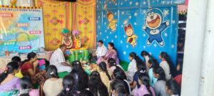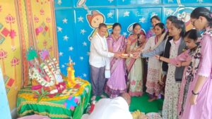 Students and teachers participated in the special rituals. The school principal gave her best wishes to students for their exams. ‘Prasad’ was distributed among students and staff members.