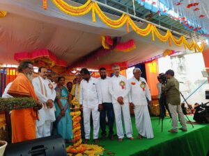 On the occasion of the 12th anniversary of Panchamuka Sri Anjaneya Swamy devasthanam in the village, the mass Hanuman chalisa programme was organised by the temple authorities under the guidance of temple chairman Kasam Ramesh and Lion KV Ramana Rao. The Mumbai-based Spiritual Book of World Record had earlier conducted the mass feat of rendering mass Hanuman chalisa with 425 women.