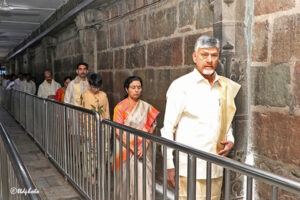 Later, he offered prayers to Sri Venkateswara Swamy inside Sanctum Sanctorum, accompanied by his spouse Bhuvaneswari, Son and AP Minister Nara Lokesh and other family members on the occasion of the birthday of his grandson Nara Devansh.