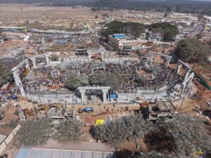 The devotees were seen competing to offer prayers by forming serpentine queues at the ‘gaddelu’ (altar). The devotees were offering ‘Bangaram’ (Jaggery) as is a ritual at the Medaram jatara.