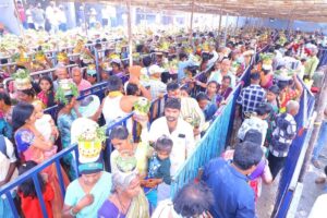 With the biennial Samakka-Sarakka jatara in Medaram scheduled to be held from January 28 to 31, the number of devotees rush at the Vemulawada temple shrines has increased. It may be mentioned that the devotees proceeding to the Medaram jatara would visit Vemulawada temple town and offer prayers to the presiding deities at Sri Raja Rajeshwara Swamy and Baddi Pochamma temple. The devotees offer bonam and toddy to the presiding deity, as is a ritual at the Baddi Pochamma temple.