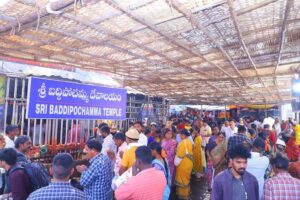 With the biennial Samakka-Sarakka jatara in Medaram scheduled to be held from January 28 to 31, the number of devotees rush at the Vemulawada temple shrines has increased. It may be mentioned that the devotees proceeding to the Medaram jatara would visit Vemulawada temple town and offer prayers to the presiding deities at Sri Raja Rajeshwara Swamy and Baddi Pochamma temple. The devotees offer bonam and toddy to the presiding deity, as is a ritual at the Baddi Pochamma temple.