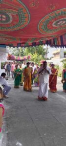 Faculty member of TGSWRDC for women in Shatrajpalli, near Vemulawada temple town, Reddymalla Deepthi, and her husband, Naresh, have sponsored the Anna prasadam distribution for devotees. More than 1500 devotees attended the Anna prasadam programme.