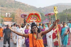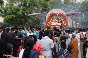 The Vahana Seva took place in the streets amidst the colourful performance by devotional dance troupes.