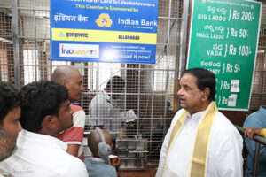 During the inspection, the Chairman personally went to the counter and examined the laddu issuance procedure, staff performance, and the weight of the laddus.