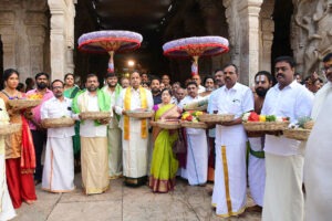 On this occasion, the Chairman took a procession carrying pattu vastrams on his head and offered them to the deity.