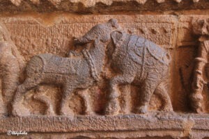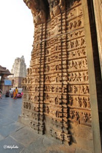 Yali pillars are seen in many temples built during the Rayal dynasty. However, in Vontimitta temple each pillar has a hollow space in the middle where a person can sit, which is a unique feature. The pillars in the Ranga Mandapam are beautifully carved with scenes from Puranas and attract devotees. Two pillars in particular are designed in the traditional Petrus style and stand out for their artistic beauty.