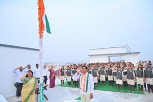 Alphores Educational Institutions Chairman V Narender Reddy participated as the chief guest and hoisted the national flag, followed by the national anthem.
