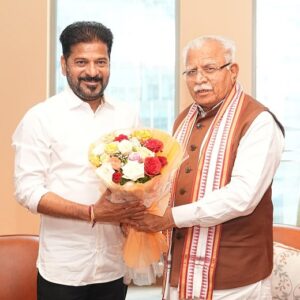 The Chief Minister briefed Mr Khattar about the zero-carbon emission measures, including promoting EV vehicles in the state. About 3,000 electric buses are also being pressed into service in Hyderabad in the coming year. The Future City project, global investments in the new city and the proposed Dry Port to bolster the state economy were also discussed in the meeting.
