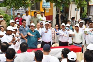 The initiative was held in collaboration with the Pedda Amberpet Municipality. Over 400 officers and staff of GSI Southern Region enthusiastically participated in the programme, which began with a 1 km Swachhata rally carrying banners and slogans to spread the message of cleanliness.