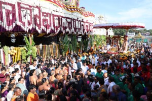 The five hooded serpent king, believed to be Vasuki, carried his Master and paraded along four mada streets.