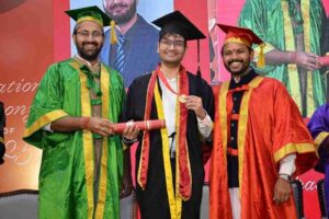 The degree conferment was conducted by Prof. Syed Akbaruddin, Dean of KSPP and former Permanent Representative of India to the United Nations. Degrees and certificates were awarded by the Chief Guest. Dr. D. Gunasekaran, Registrar of GITAM, formally presented the degree records to Prof. Errol D’Souza, Vice-Chancellor. The Graduation Pledge was invoked by Prof. D.S. Rao, Pro Vice-Chancellor, and read aloud by graduating student Vaibhavi Awasthi.