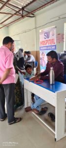 The camp was aimed at promoting health awareness and providing essential medical services to the people. SV Hospital, Karimnagar, Dr Challuri Vijay Kumar, along with his team of doctors, Ophthalmologist Dr Sandhya Rani, Physician Dr Eshwar, Gyneacologist Dr Prathista Rao, Orthopedician Dr Vijay, Dentist Dr Mounika and others were also present.