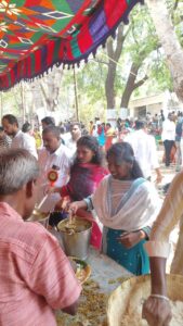 During the event, NSS Program Officer Padala Tirupathi introduced Vasala Varaprasad as a distinguished Hindi poet, writer, and a leader with great vision. Following this, the Programme Officer and NSS volunteers honored the professor with a shawl.