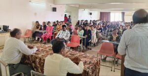 The orientation programme started with Principal Ch Srinivas addressing the gathering. He apprised the volunteers about the motto, the importance, purpose and objectives of the NSS symbol honour badge, the role and duties of the volunteers, as well as the activities carried out by it. The volunteers were asked to regularly maintain a hard copy of the NSS work record whenever the activities were conducted and submit the same as and when asked by the programme officers.