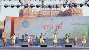The Telangana artists presented the Perini dance as part of Bharat Parv–2026 at the lawns near Gyan Path, opposite the Red Fort in Delhi. Traditionally performed in honour of Lord Shiva before warriors set out for battle, Perini is also known as the “Dance of Warriors.” This classical dance form dates back nearly 800 years and originated and flourished in Telangana during the Kakatiya dynasty.