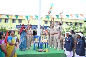 Inspired by two female Armed Forces officers who led Operation Sindoor, Colonel Sofia Qureshi, Wing Commander, and Vyomika Singh led the Operation Sindoor. Two women officers, Woman SI, Vangara, Divya and Afreen Principal, jointly hoisted the large National Flag on a 79-foot flagpole.
