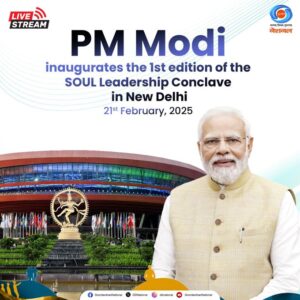NEW DELHI, FEBRUARY 21, 2025: Prime Minister Narendra Modi inaugurated the School of Ultimate Leadership (SOUL) Leadership Conclave 2025, the first of its editions, at Bharat Mandapam, New Delhi on Friday.