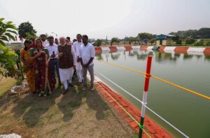 One farmer shared his journey of leaving a lucrative career in the United States in 2014 to return to India and empower rural communities. Starting with just 10 acres of land, he now manages over 300 acres of farming, hatcheries, and produces seed for 10,000+ acres. With support from the Fisheries and Aquaculture Infrastructure Development Fund (FIDF), he was able to secure financing at just 7% interest, allowing him to grow his operations to employ over 200 people. “It was a ‘wow’ moment to see PM Modi walking toward us,” the farmer said.