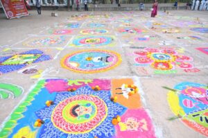 KARIMNAGAR, JANUARY 10, 2026: Alphores educational institutions in Karimnagar town wore a festive look ahead of the ensuing Sankranthi festival, by conducting Rangoli competitions for the mothers of the students of the schools at the SRR Government Degree College in Karimnagar town on Saturday.