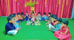 The students donned the characters of Godadevi and Lord Ranganatha, Haridasu and Gangireddulu. The chairman and teachers participated in the pouring of ‘Bhogi pandulu’ on the tiny tots, as is a ritual during the Sankranthi festival.