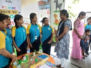 As part of this programme, various topics learned in the classroom this quarter were explained experimentally by the students. The students demonstrated how they studied numbers, letters, poems, and moral stories in the classroom. Further, the students explained about biodiversity, the food habits of various types of birds and animals and the climatic conditions of the regions.
