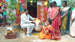 Alphores educational institutions chairman V Narender Reddy launched the celebrations by lighting the traditional campfire (Bhogi mantalu). He also participated in ‘Bhogi pallu (Indian berries), a manner of blessing the children by showering them with berries and flowers.