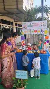 Besides, the students also learnt the importance of various vegetables and fruits and their consumption. They also educated the customers to carry a cloth bag instead of plastic to save the environment from pollution. School Chairman B Ramana Rao congratulated the students for their creativity and thanked the teachers and parents for their support.