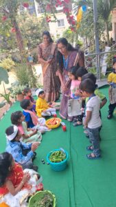 Through this hands-on and interactive experience, the children learnt how farmers show and nurture crops, how fresh produce travels to the markets and how it finally reaches our homes. This activity not only strengthened their understanding of food sources but also instilled in them the values of gratitude, respect for farmers and mindful consumption.