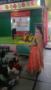 The senior toddlers were welcomed into the premises with garlands. This tradition can help ease students’ nerves and make them feel welcome and excited for the school year. The celebrations began with the lighting of the lamp and offering prayers to Goddess Saraswathi by School Director Ch Venkateshwarlu and Principal Ch Pallavi
