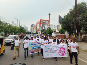 WARANGAL, AUGUST 05. 2025: “Mother’s milk is life-saving for every newborn,” said Dr. S. Sandhya, Principal of Kakatiya Medical College, Warangal. On Tuesday morning, as part of World Breastfeeding Week celebrations, a ‘Walkathon’ was organised by the ‘Sevaarth Club’ of Kakatiya Medical College in association with Warangal Academy of Paediatrics and Koorapati Hospital.