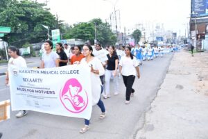 WARANGAL, AUGUST 05. 2025: “Mother’s milk is life-saving for every newborn,” said Dr. S. Sandhya, Principal of Kakatiya Medical College, Warangal. On Tuesday morning, as part of World Breastfeeding Week celebrations, a ‘Walkathon’ was organised by the ‘Sevaarth Club’ of Kakatiya Medical College in association with Warangal Academy of Paediatrics and Koorapati Hospital.